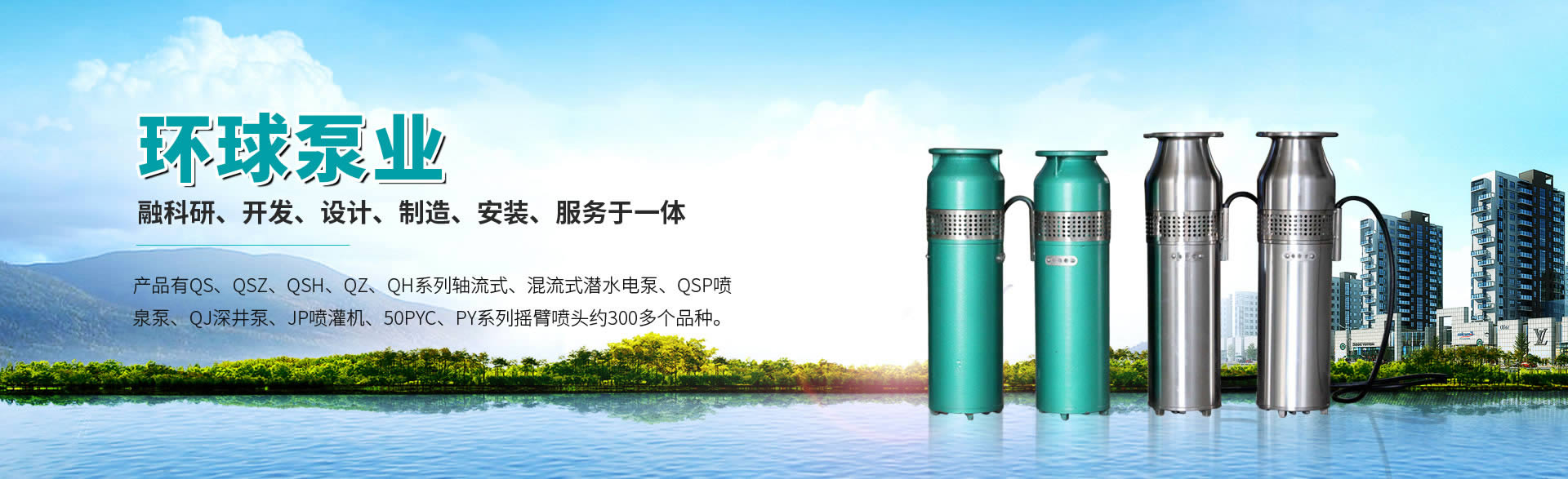 環球泵業 產品展示公司噴泉泵產品有QJ系列潛水泵、QSP系列噴泉泵、QS系列農用泵、不銹鋼水泵等約300多個品種。
